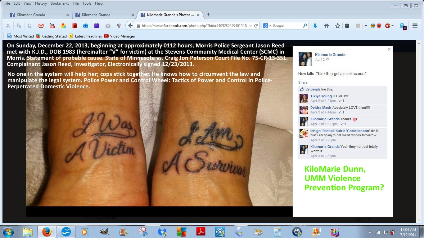 KiloMarie Dunn (Granda) is a former fellow Morris teacher and a University of Minnesota, Morris Violence Prevention person, isn't she? She is, isn't she? (Peterson isn't a very smart criminal, is he? He isn't, is he?)