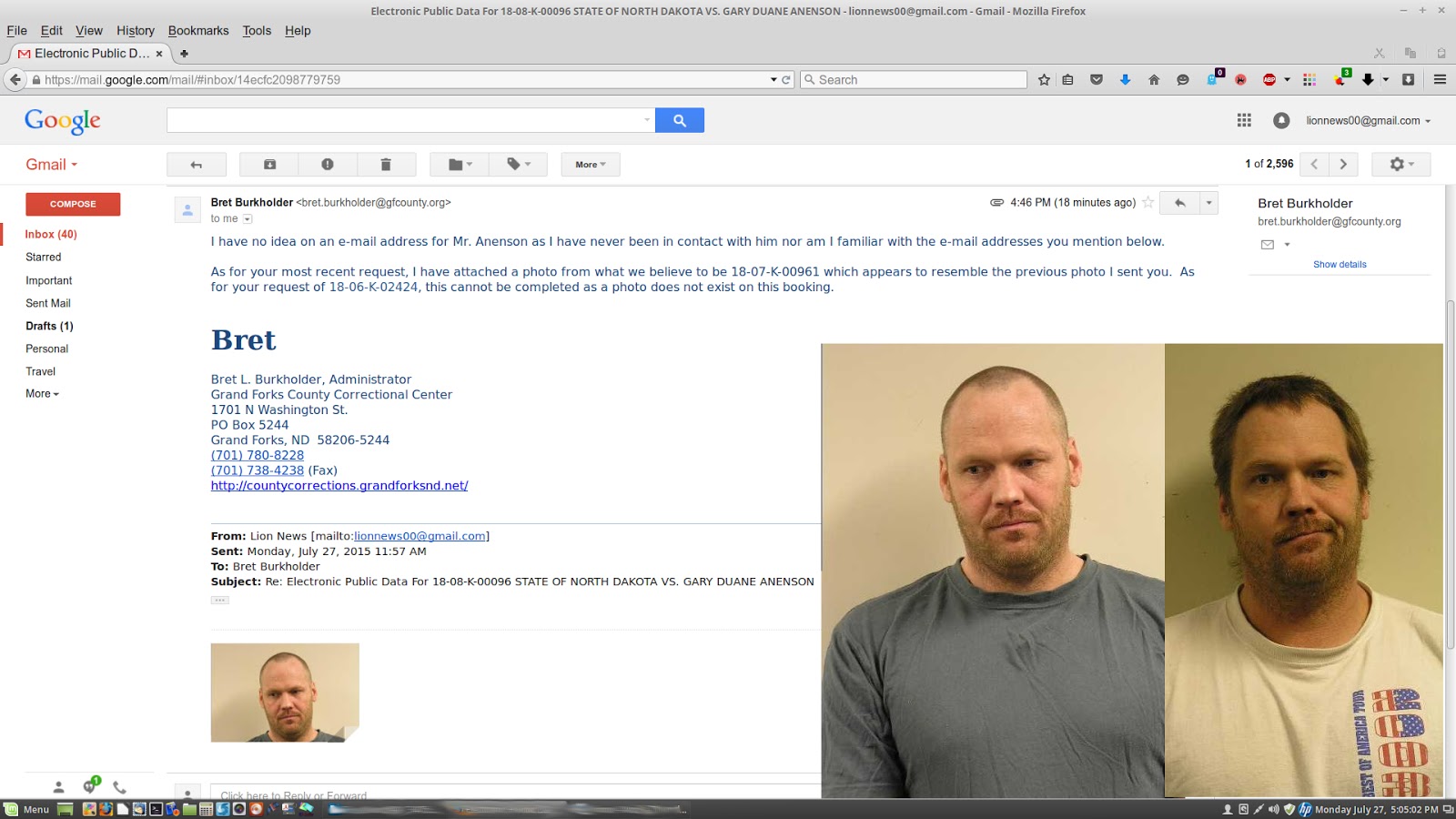 | subject: | Harassing "Anonymous" Response From Sievert To Nemmers' Chapter 13 data request - Electronic Data For May 13, 2015 Harassment Of Nemmers & Rapatt By City Personnel - Part 2 | ||